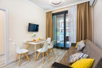 Апартамент на 2 этаже номер 226: Студия + спальня + 2 террасы (из студии и из спальни) + гардероб + санузел.