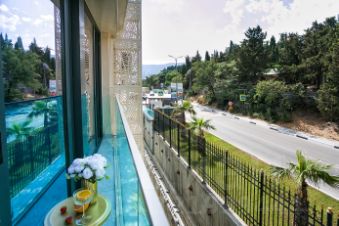4 минуты - отель Ялта интурист в нем можно за доп плату.