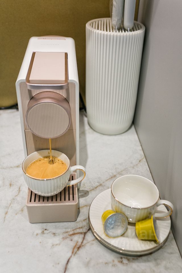 Бытовая техника: стиральная машина, духовка, электро плита, электрочайник, кофеварка, бокалы, кружки, чай - кофе, полная комплектация) и столовые приборы.