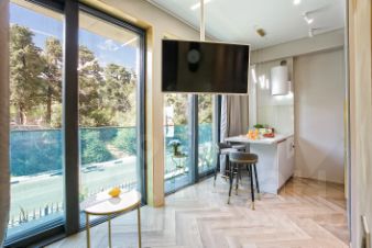 до 4 человек (кровать и диван раскладной) + санузел + терраса с видом на парк.