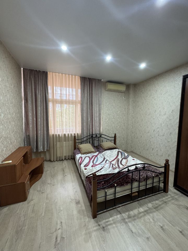 Квартира с евроремонтом и полностью готова к проживанию. В ней есть всё необходимое: кондиционер, холодильник, телевизор и стиральная машина. Просторная кухня оборудована мебелью, а в комнате вы найдёте удобное спальное место и гардероб. Санузел совмещённый, с ванной. Из окон открывается вид во двор, что обеспечивает тишину и уют.
