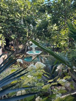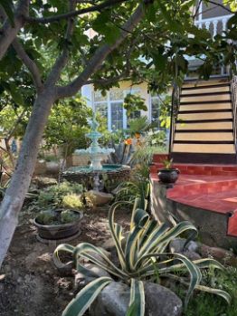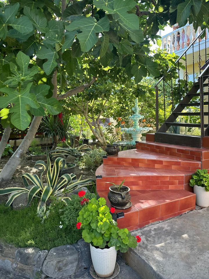 Гостевой дом расположен в живописном месте с видом на улицу и двор, окружённая зеленью и декоративными элементами. На территории двора есть зона отдыха с барбекю, беседками и топчан, где можно насладиться свежим воздухом и природой.