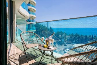 до 4 человек (кровать и диван раскладной) + санузел + терраса с видом на море.