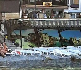 На набережной есть рестораны, кафе, столовые, магазины, аптека, прокат и водные развлечения.