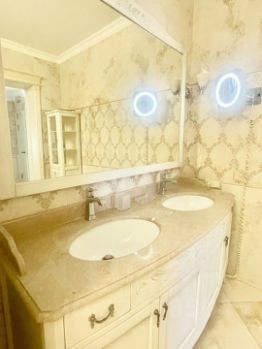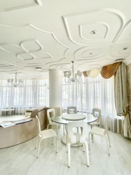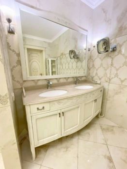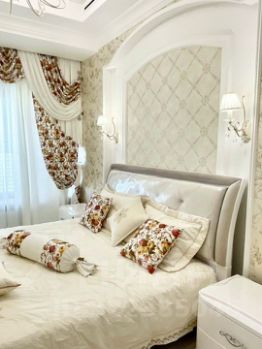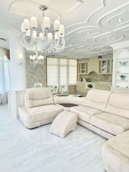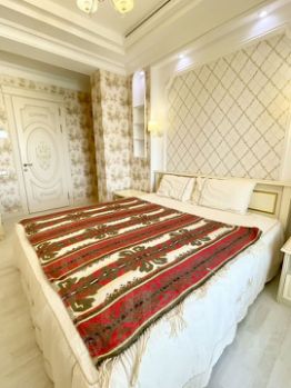 Интерьер апартамента выполнен в светло-бежевых приятных оттенках, акцентом является эксклюзивная роскошная мебель в дополнении с текстилем. Апартамент приобретает особенный шарм. Утонченные линии, мягкие приглушенные молочные оттенки, изысканная мебель, высококачественная техника - все от наполнения до окружающих пейзажей лучшее и особенное.