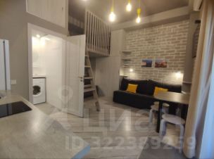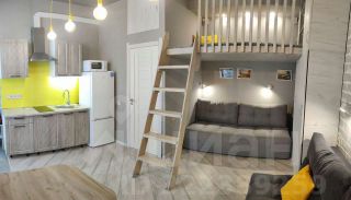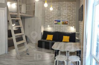 В студии два раскладных дивана, двуспальное место на втором этаже, а также кухня и обеденная зона, укомплектованные всем необходимым для приема и приготовления пищи. Квартира после ремонта, вся мебель новая.