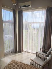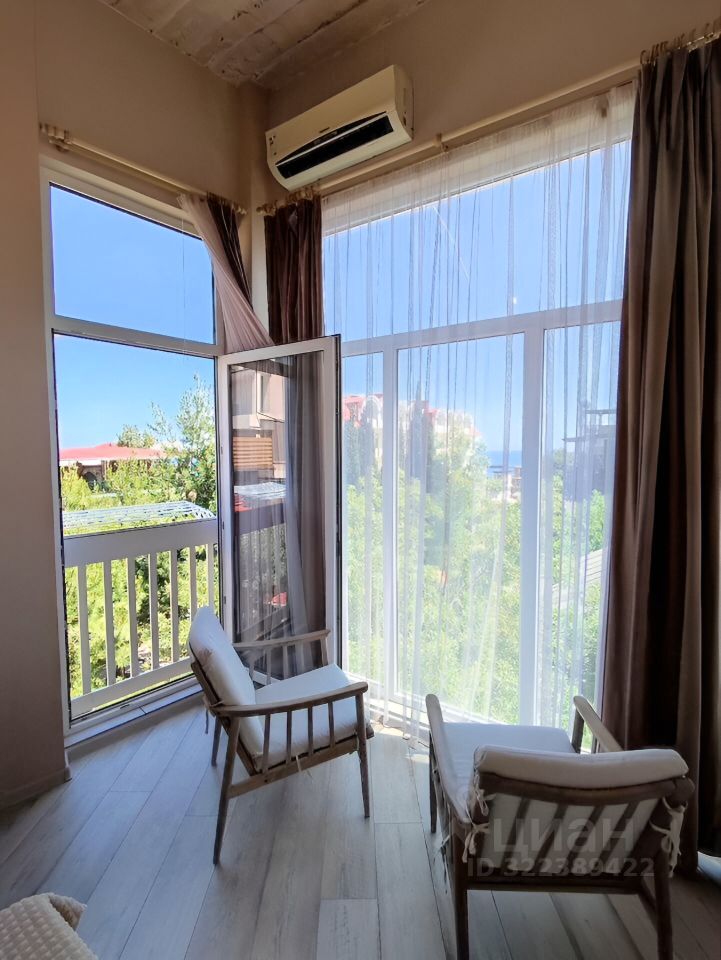 Из панорамных окон открывается прекрасный вид на посёлок и море. Есть французские балкончики.
