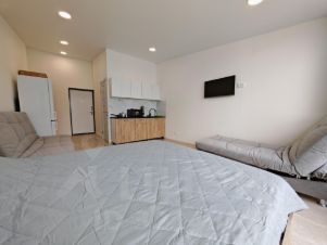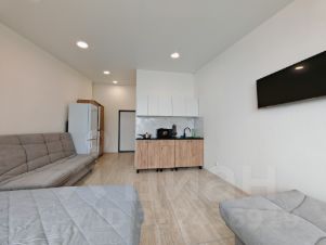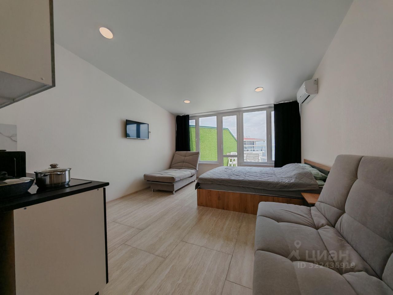 Вашему вниманию квартира-студия на берегу моря в новом жилом комплексе с oгopоженнoй территорией, песчаный пляж, великолепный вид на море. На территории комплекса имеется детская игровая площадка, продуктовые магазины, пиццерия, кафе, ресторан "Хмель", круглосуточная аптека, прачечная, мини-рынок, в пешей доступности остановка общественного транспорта, парк с детскими аттракционами, набережная, где вы найдете развлечения по душе. На пляже зонтики, шезлонги, развлечения для детей.