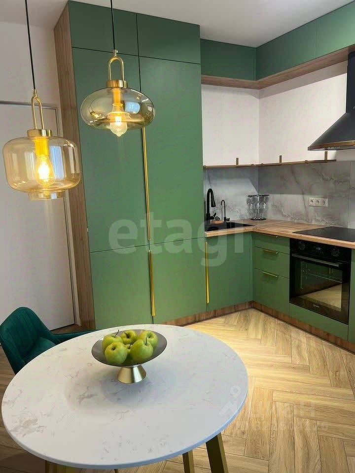 Квартира полностью укомплектована мебелью и техникой, есть кондиционер.