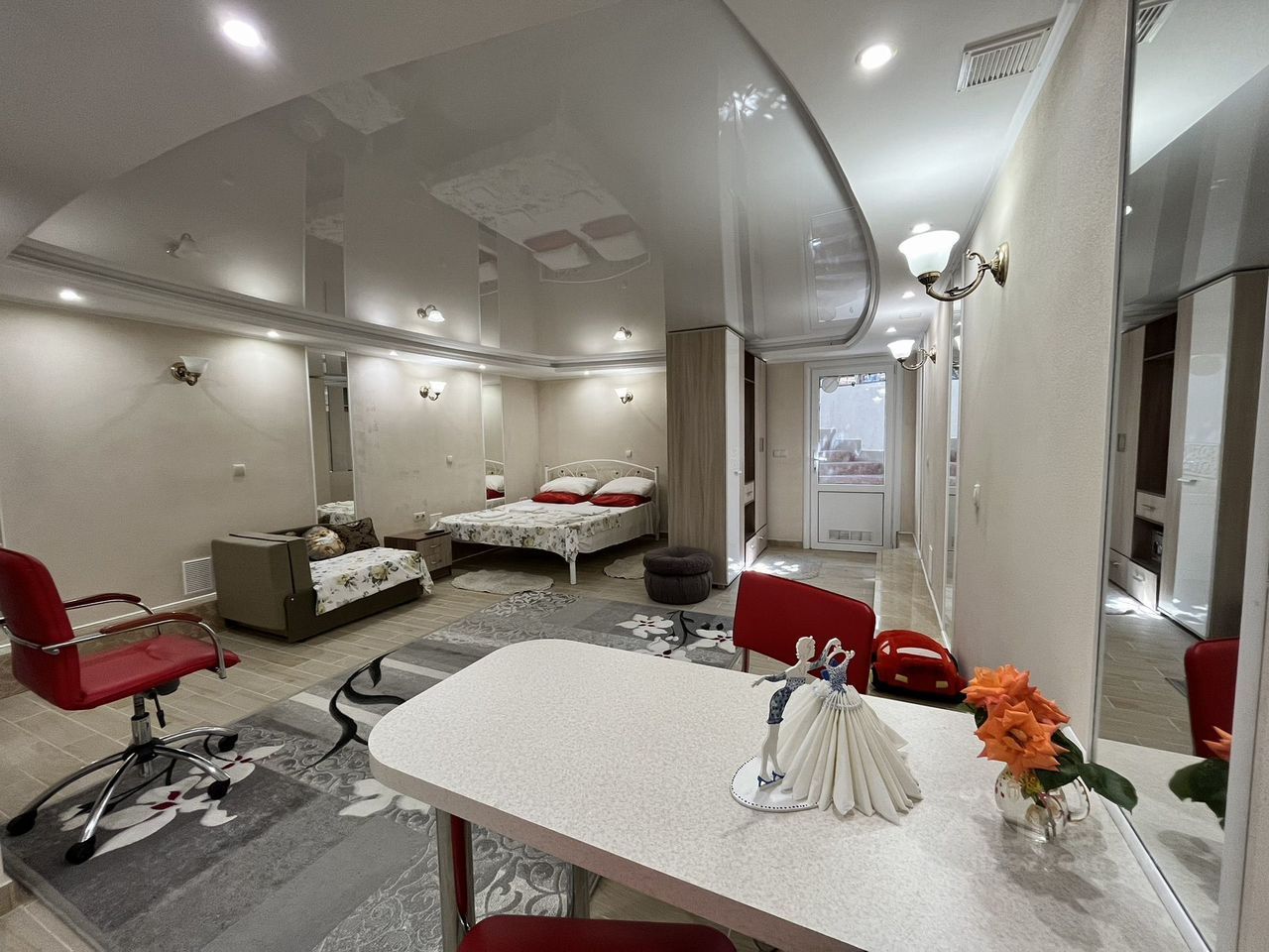 Номер студия, просторная и светлая. Полуцоколь. Возможно проживание с питомцем. Уборка 1 раз в три дня, смена полотенец. Хорошо проветриваемая, с отдельным выходом во двор.
