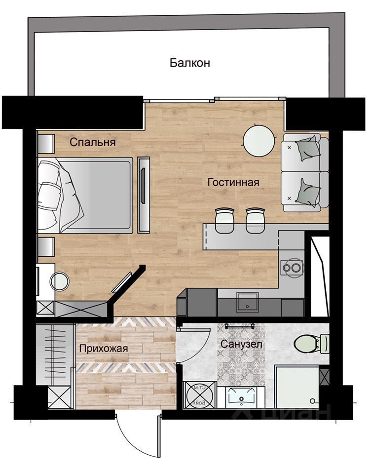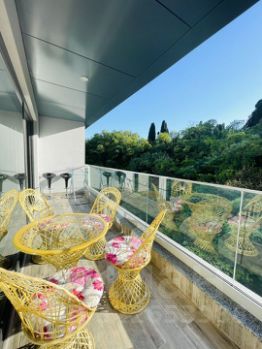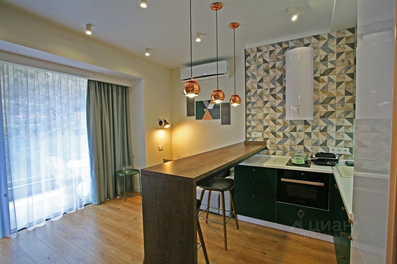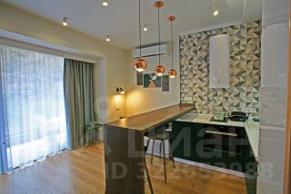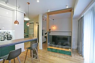 Ремонт дизайнерский, оснащена всем необходимым для проживания: стиральная машинка, духовка с свч, кофеварка, фен, утюг, пылесос, кондиционер, тёплый пол. Кровать 160, диван в кухне студии раскладывается. На балконе уличная мебель.