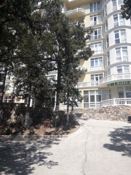Сдам в нижней Гаспре до лета студию в новом комплексе Дуэт.Закрытая территория,парковка,детская площадка.Рядом магазины,остановка,кафе.Отопление электро.Вид на море и АйПетри.