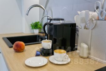 Бытовая техника: стиральная машина, посудомойка, духовка, электро плита, электрочайник, тостер, кофеварка, бокалы, кружки, чай - кофе, полная комплектация) и столовые приборы ,большой встроенный вместительный шкаф вдоль всей стены.