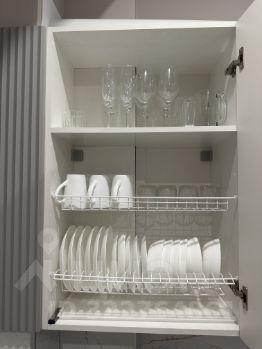 - имеется оборудованная кухня (микроволновая печь, духовой шкаф, индукционная варочная панель на 3 комфорки, посудомоечная машина, фильтр для питьевой воды Барьер, чайник, большой встроенный холодильник 180 см, а также вся необходимая посуда и бокалы), стиральная машина, полотенцесушитель, гладильная доска, утюг, фен,
