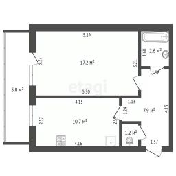 Общaя площадь квapтиры соcтaвляeт 44,6 м², в квартире просторная комната площадью 17,2 м².