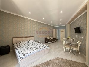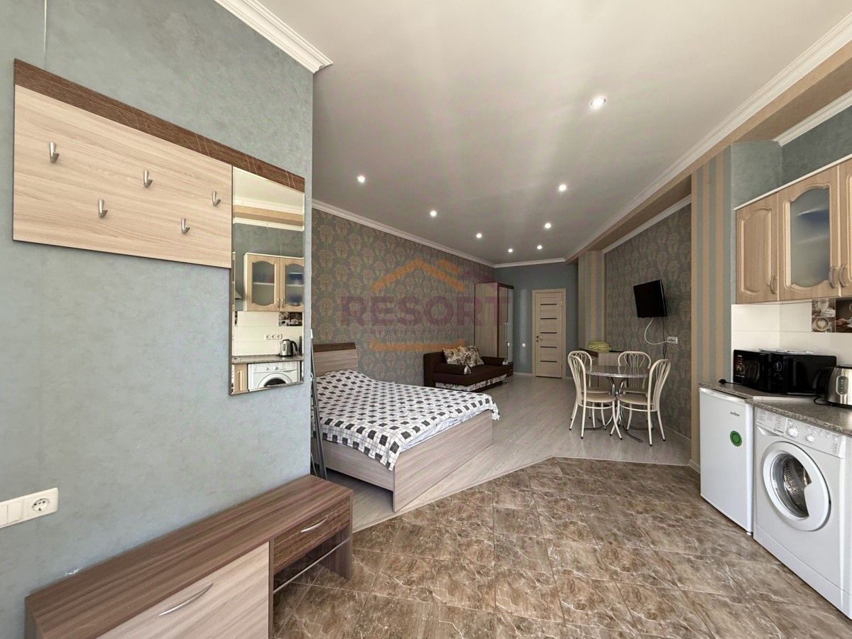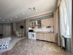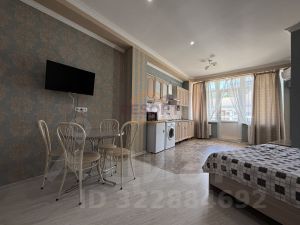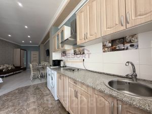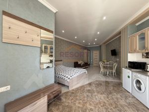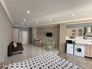 Студии есть кухня, с мелкой бытовой техникой: плита, электрочайник, микроволновая печь, необходимый набор посуды.
