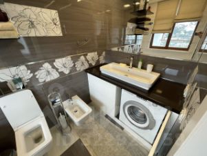 Два сан. узла: первый с душевой, раковиной и унитазом, второй с полноценной ванной для купания с видом на горы, раковиной, биде и унитазом.