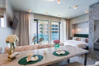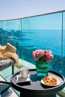 Море. Роскошный вид на море из самого нового и стильного апартамента в новом доме. Две минуты до культового клуба-ресторана Чайка на Пляже. Две минуты до лучшего пляжа на побережье Скай Бич. На пляже бар, ресторан, два подогреваемых бассейна с морской водой. Бар в бассейне. Комфортные шезлонги и бунгало, диджей и развлекательные программы. По вечерам пуфы и столики у моря, фильмы под открытым небом. До центральной набережной 20 минут прогулки по ровной местности, можно доехать на электрокаре. С нашего пирса можно прокатиться на теплоходе в Гурзуф, на набережную Ялты или к Ласточкиному гнезду. В апартаменте двуспальная кровать, раскладной диван. Огромный балкон с видом на море, панорамные окна. Белоснежное постельное белье и мягкие полотенца. Полностью оборудованная кухня: плита, микроволновая печь, холодильник, чайник, кофемашина, вся необходимая посуда. Также в апартаменте стиральная машина, утюг, гладильная доска, фен. Телевизор и кондиционер. Для первого дня вашего пребывания для вас чай, капсула кофе, Сахар. В ванной комнате одноразовые гель, шампунь, зубной набор, туалетная бумага, капсула для стирки. Расходные материалы для первого дня и во время дальнейшего проживания не пополняются.В комплексе подземный паркинг и при наличии мест за дополнительную плату возможно воспользоваться. Для вашего комфорта мы постарались продумать каждую мелочь! ВАЖНО!!! Дом совсем новый, в соседних апартаментах ещё идут ремонты. Поэтому иногда возможен шум, в общих коридорах можно встретить строительные материалы по пути в наш прекрасный апартамент.Если вы любите новые апартаменты и вас не смущает шум, ждём вас в гости!