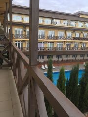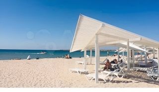 Вторая кухня-гостиная с двумя разборными мини-диванами 1,4м шириной каждый, то есть ширина каждого спального места такова, что туда вполне вместятся и двое детей. Взрослому человеку спать более чем комфортно, так что прекрасно разместится семья до 5-6 человек. Закрытая охраняемая территория с возможностью парковки, а/м. На территории есть большой бассейн. До моря 300 метров, 4-5 минут ходьбы. Пляж белый чистый песок, зонтики, кафешки, красота!