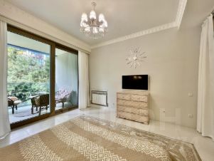 Спальня: двуспальная кровать, ЖК телевизор, выход на балкон с которого открывается прекрасный вид на парк и горы.