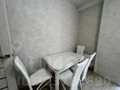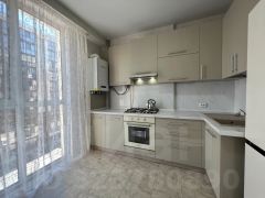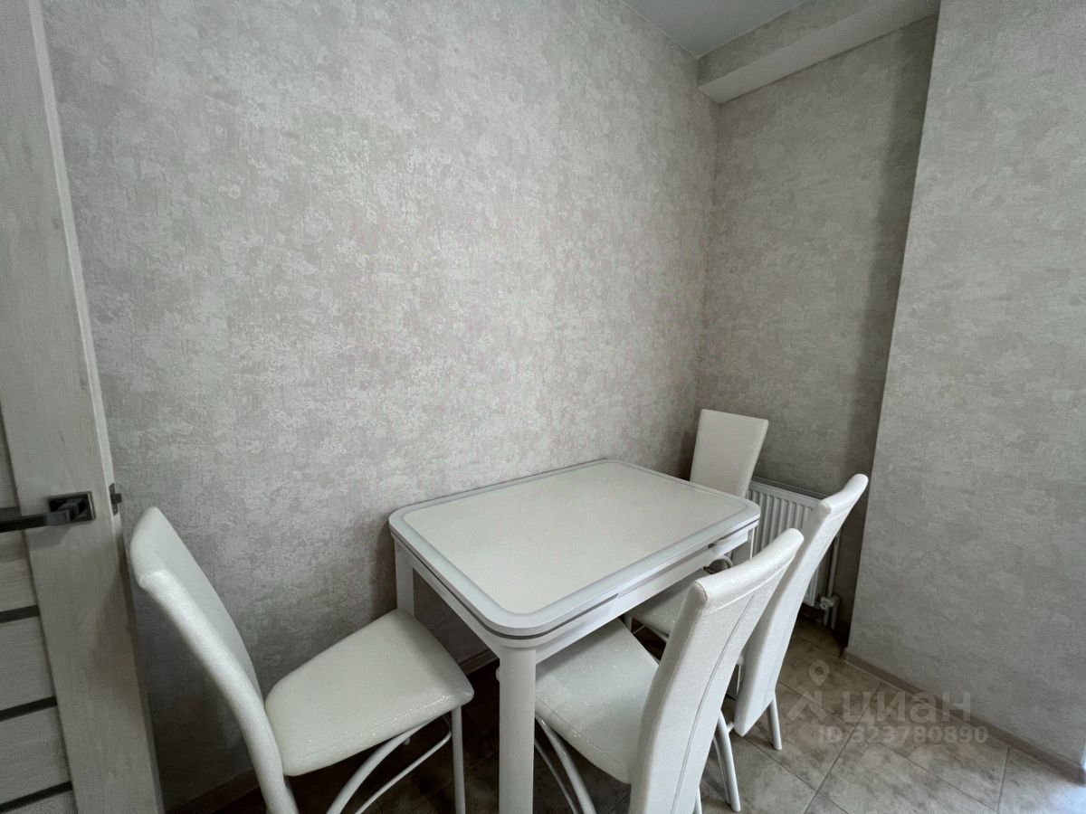 Встроенная кухня со встроенной техникой. Варочная поверхность, духовой шкаф. Холодильник, обеденный стол и стулья.