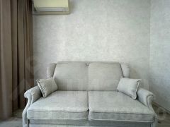 В комнате шкаф купе, раскладной диван, телевизор, кондиционер.
