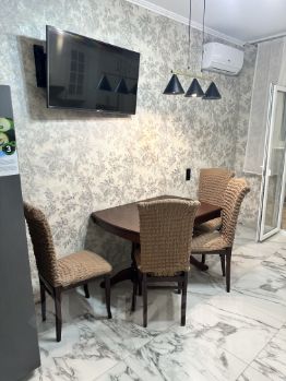 Квартира подойдет для размещения семьей 4х гостей. В ней есть вся требуемая мебель и бытовая техника. Из комнаты у вас открывается панорамный вид на горы. Санузел раздельный. Кухня достаточно просторная и оборудованная всем необходимым, выход на балкон.