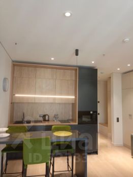Уютная студия, представляет собой единую зону с кухней и пространством для отдыха с двуспальной кроватью и дополнительным спальным местом. Общая площадь апартаментов - 38,1 кв. м.