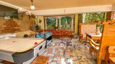 Бассейн с подогревом, Есть зона барбекю и беседка для отдыха, Бильярд, аэрохоккей, сауна, детская площадка.