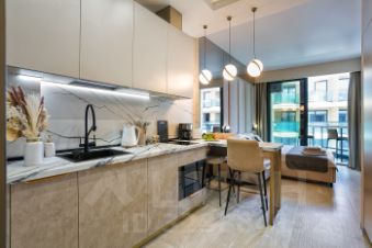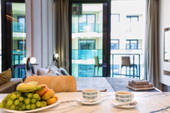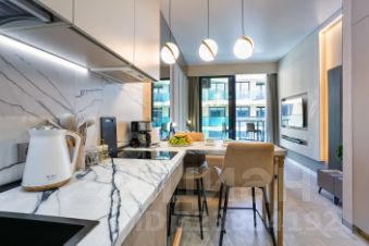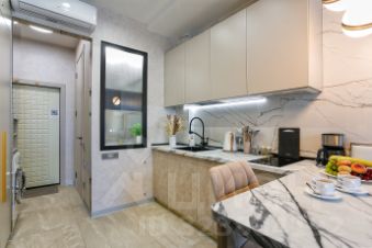 Апартамент на 7 этаже: Студия на 3 человека (кровать и раскладное кресло) + санузел + терраса с видом на море (27м²).