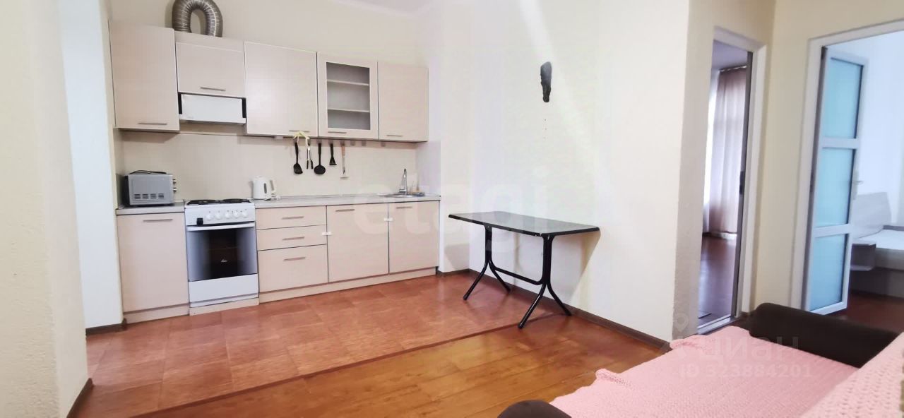 В квартире кухня-гостиная, две изолированные спальни, которые имеют выход на общую лоджию с видом на горы. В каждой комнате большие шкаф-купе, двуспальный кровати. К кухне- гостиной примыкает небольшая комната с большими окнами, в которой можно организовать рабочий кабинет. Санузел совмещенный.