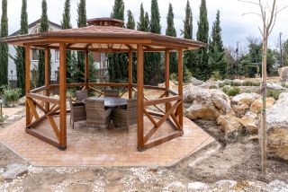 Комплекс находится на расстоянии 8 км от автовокзала г. Ялты. Территория комплекса закрытая и охраняемая. В зоне ресепшен есть место для отдыха, где вы можете провести время и выпить чашечку ароматного чая.