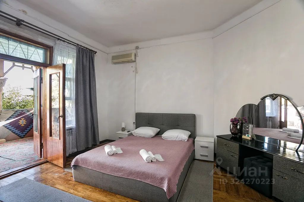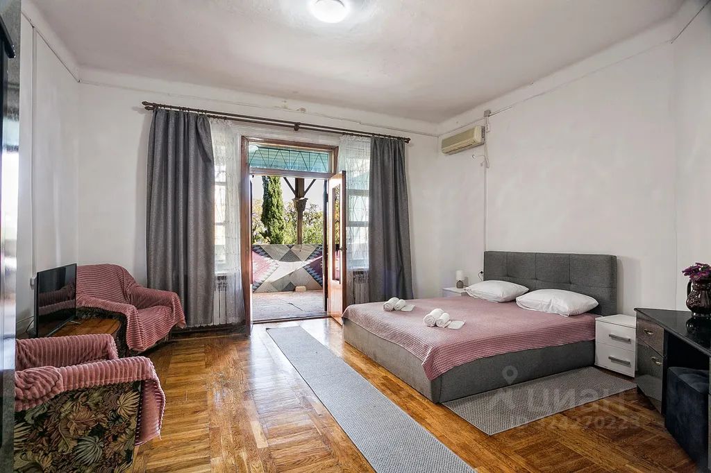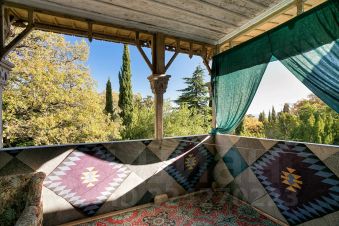 Приглашаем вас провести отпуск или в деловую командировку в гостевой дом "Югославия", который находится в историческом месте, бывшем доме царского садовника, в 80 метрах от Ливадийского дворца. Гостевой дом расположен в 200 метрах от архитектурно-паркового комплекса "Ливадийский дворец", окруженным прекрасным парком (42 га), заложенным почти 150 лет назад. Считающимся одним из самых красивых парков мира. Гостевой дом "Югославия" рассчитан на 25 мест. Располагается в двухэтажном доме царской постройки, толстые каменные стены и высокие потолки сохранят прохладу летом и тепло в межсезонье. На территории к услугам гостей предоставляется бассейн и вайфай. В номерах постельное бельё, свежие полотенца. За дополнительную плату на территории предоставляется питание в известном ресторане "Югославия", также можно заказать комплексные завтрак/обед/ужин. До пляжа можно дойти через парк или по асфальтированной дороге. Просторный номер с двухспальной кроватью и небольшим диваном. Также в номере есть трюмо, шкаф для одежды, тумба под телевизор, журнальный столик и огромная терраса с видом на море. На террасе установлены два дивана. Также в номере установлен холодильник, кондиционер. Своя ванная комната.