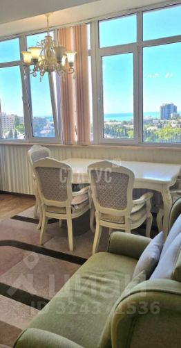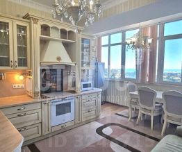 Сдаётся на круглый год видовая двухкомнатная квартира в ЖК Московский на ул. Московская. Квартира очень просторная, с хорошим ремонтом. Две изолированных комнаты: спальня с двуспальной кроватью и гостиная с двуспальным раскладным диваном. Кухня-столовая с раскладным полутораспальным диваном. Есть большая видовая лоджия с видом на море и город, гардеробная. В квартире 3 кондиционера - в каждой комнате и на кухне, 3 телевизора, электрическая плита с духовкой, микроволновка, стиральная машина. Отопление от котельной комплекса, дом охраняется, дежурит консьерж.