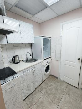 Студия небольшая, но есть все необходимое для комфортного проживания: телевизор, обогреватель, стиральная машинка, плитка, wi-fi роутер.
