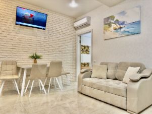 Кухня - гостиная с раскладным диваном, телевизором и всем необходимым оборудованием для готовки Ваших вкусных завтраков, обедов и ужинов
