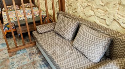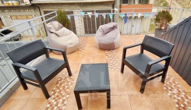 Внимание!!! В Коктебеле продолжается реконструкция набережной, центральная часть набережной закрыта. Открыты пляжи: Юнге, Белый Грифон, Карадаг, Тихая бухта. Сдаётся посуточно двухэтажная квартира с террасой 48 кв.м. на земле в пгт Коктебель в дачном массиве недалеко от моря (700 м), с двумя входами, 2 кондиционерами, Wi-Fi, TV через интернет, с кухонной зоной, 2 совмещенными санузлами, балконом, постоянным водоснабжением по адресу улица Аксенова, 22/1 рядом с отелем Медведь. Расстояние до моря и набережной с аквапарком и дельфинарием 700 м, ближайший магазин 200 м, до рынка - 600 м, автостанция - 850 м. Первый этаж: кухонная зона (рабочая зона кухни, микроволновка, эл. чайник, индукционная плита, холодильник, водонагреватель, посуда и кухонные принадлежности, бытовая химия), двуспальная кровать и двуспальный диван-кровать, стол обеденный, 4 стула, комод, вешалка для одежды, гардеробная, пуфик, постельное белье, журнальный столик, телевизор, кондиционер, санузел (душевая кабина, подвесная раковина с зеркалом, унитаз, стиральная машина, полотенца, рукав для сушки полотенец, утюг с гладильной доской, туалетные и ванные принадлежности, бытовая химия, водонагреватель, сушилка для белья). Зона отдыха: мангал с закрытым огнем, столик и два стула. Второй этаж: диван кровать 1,5, постельное белье, кондиционер, столик раскладной с настенной полкой для посуды, стул, телевизор, шкаф, горка для тв, холодильник для напитков, санузел (душевая кабина, подвесная раковина с зеркалом, унитаз, полотенца, туалетные и ванные принадлежности, бытовая химия, водонагреватель, водоснабжение постоянное (центральное и автономное). Терраса: ротанговые 2 стола и 2 кресла, 2 кресла-мешка, надувной бассейн. Разрешено размещение с детьми любого возраста, домашними животными (собаками мелких пород по договоренности). Запрещено курение в квартире (на террасе и зоне отдыха есть места для курения). Заезд после 14.00, выезд до 10.00. В квартире предусмотрено размещение не более 4 человек, включая детей. Сдается первый сезон. Минимальный срок бронирования 7 суток.