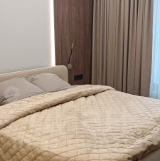 В квартире выполнен дизайнерский ремонт, который создаст атмосферу уюта и комфорта. Просторная кухня площадью 17 кв. м оснащена всей необходимой техникой: посудомоечная машина, холодильник, кондиционер и телевизор. В комнате есть мебель, а в ванной — современная душевая кабина и стиральная машина, сушильная машина для белья. Интернет уже подключен, поэтому вы сможете оставаться на связи в любое время.