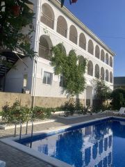 На территории есть детская игровая площадка, бассеин с атракционами, шезлонги с матрасами, Есть парковочные места для авто с видеонаблюдением! есть отдельный туал и душ возле бассеина общего пользования!