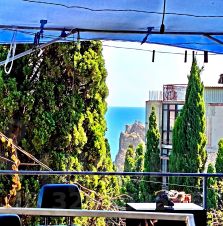 Если у вас большая компания или большая семья, разместим до трёх семей.Здесьж же домик на троих с террасой и видом на море. И двух местный номер.У каждого отдельный вход, своя кухня и отдельный санузел с душем, у всех есть выход во дворик с беседкой с видом на море и скалу Дива, мангал.