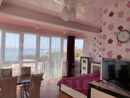 В квартире выполнено видовое остекление - панорамный вид на море и горы прямо с постели вам обеспечен!!!