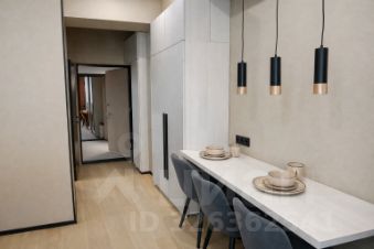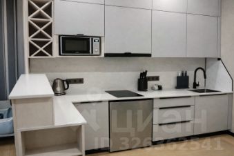 Кухня выполнена в минималистичном стиле и оснащена современной техникой.
