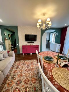 Сдается 3-х комнатная квартира в районе Уютное города Судак на длительный срок Квартира расположена недалеко от моря, в самом древнем месте города с видом на Генуэзскую крепость. Современная, со свежим ремонтом, делали для себя, панорамное остекление открывает прекрасны вид. В квартире есть вся необходимая посуда, текстильные принадлежности и хорошая бытовая техника. Есть два входа, вокруг квартиры огороженная территория с палисадником, зоной отдыха, высажены цветы-многолетники и кипарисы, так же есть просторная терраса с удобными креслами. Парковочное место прямо перед окнами, высокоскоростной интернет, автономное газовое отопление, в каждой из комнат установлены кондиционеры Прихожая: вешалка для одежды, галошница, большое зеркало, полка для обуви Гостиная: удобный диван-транформер с ортопедическим пружинным основанием, со спальным местом 160*200, большой раскладной обеденный стол и стулья из массива дерева, телевизор со Smart-TV и зоной для хранения Кухня: эргономичный гарнитур, газовая плита, духовка, микроволновая печь, мясорубка, мультиварка, холодильник, набор кастрюль, чугунных сковородок, салатников, форм для запекания, столовый, чайный, питьевой наборы, и прочие кухонные принадлежности Спальня 1: кровать с ортопедическим матрасом средней жесткости размером 160*200, вместительный шкаф для одежды, рабочее место Спальня 2: большой шкаф-купе, раскладной диван 160*200, телевизор со Smart-TV, вид на море Санузел: душевая, стиральная машина, шкаф для ванной, гигиенический душ Стоимость аренды 55000, не зависит от сезона, при аренде от 1 года, страховой депозит в размере месячной платы (можно разбить на два платежа), коммунальные платежи в размере 3000-4000 в месяц