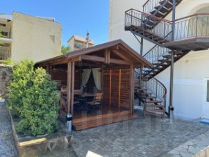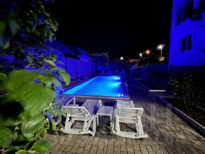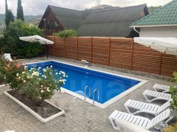 На территории есть детская игровая площадка, бассеин с атракционами, шезлонги с матрасами, Есть парковочные места для авто с видеонаблюдением! есть отдельный туал и душ возле бассеина общего пользования!
