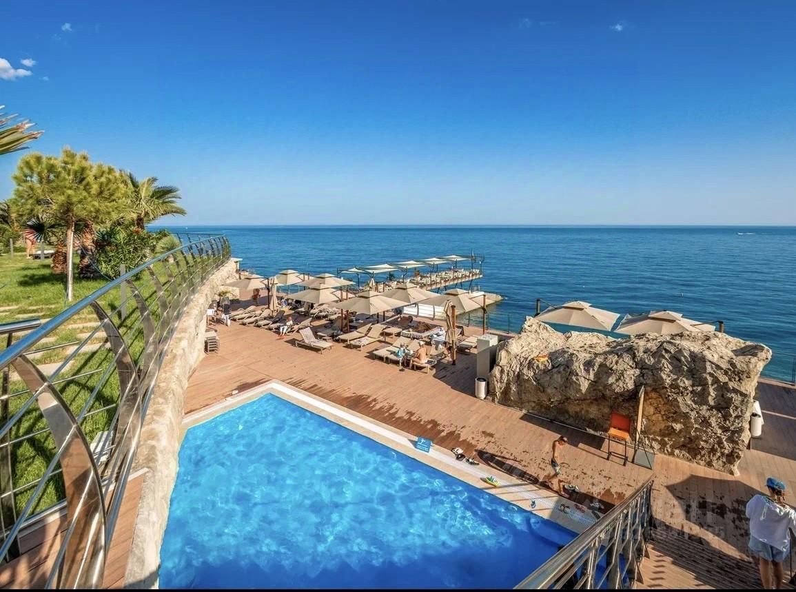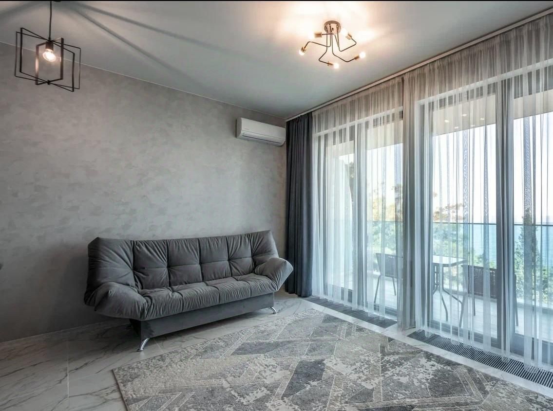 Сдаётся посуточно просторная квартира-студия с шикарным видом на море, 52 кв. м. Апарт-комплекс находится в 50 метрах от моря. Новый ремонт. В шаговой доступности находится гостиничный комплекс Ялта Интурист, Массандровский парк с огромной территорией для прогулок, зоопарк, аквапарк, рестораны, зоны отдыха. На территории комплекса имеется бассейн с морской водой и видом на море.