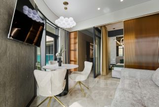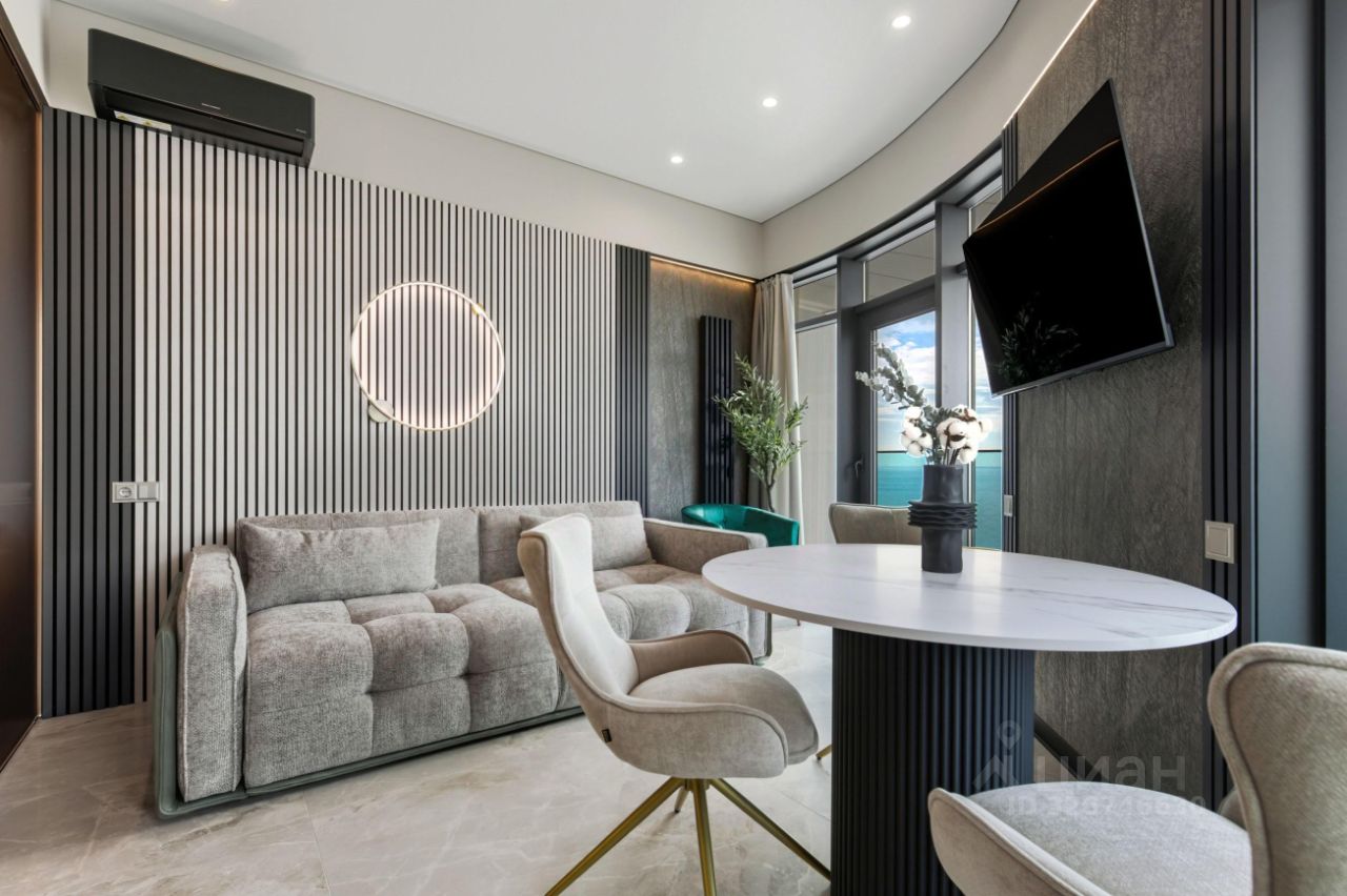 Стильная однокомнатная квартира с видом на море оснащена всем необходимым для жизни: