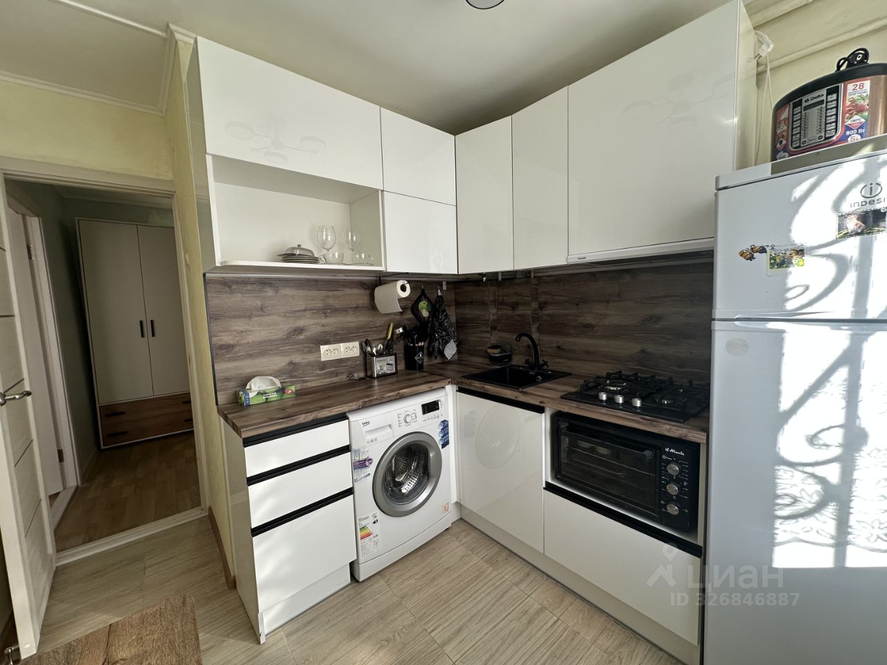 машина, духовой шкаф, мультиварка, утюг, посуда., сушильная доска. Рядом