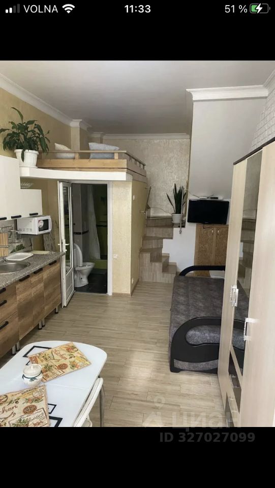 1-комнатная квартира в 2-х уровнях,1-й этаж,отдельный вход,закрытая территория,1-й этаж столовая,с/у,2-й этаж спальная комната.Квартира оборудована всей необходимой мебелью и бытовой техникой.Сдается с 1 марта длительно без повышения на летний период.