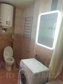 В ванной зеркало с лед подсветкой с полками, сушилка для белья электрическая, Угловая ванна, стиральная машина,