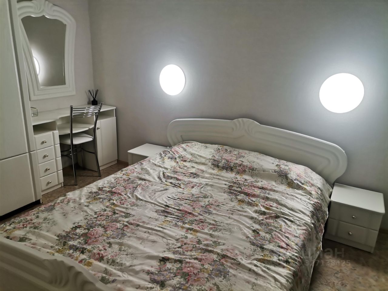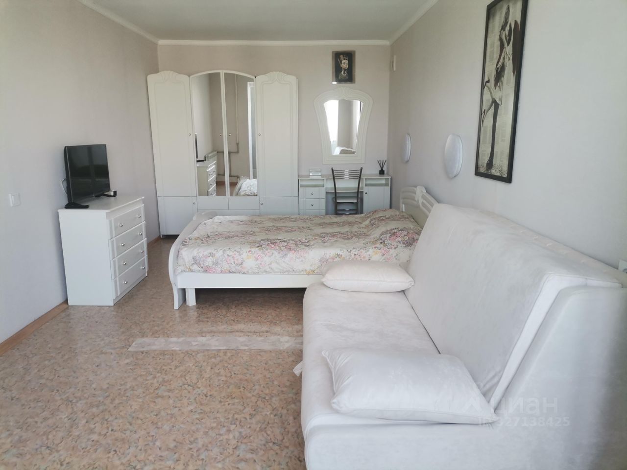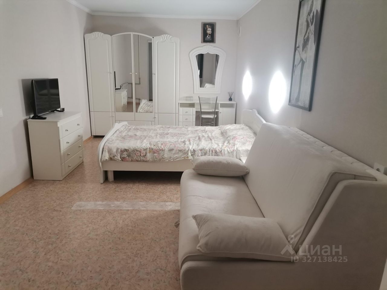 В комнате :двуспальный раскладной диван , шкаф, прикроватные тумбы, Кровать с ортоедическим матрасом. Два бра.Большой плоский телевизор, wi-fi.